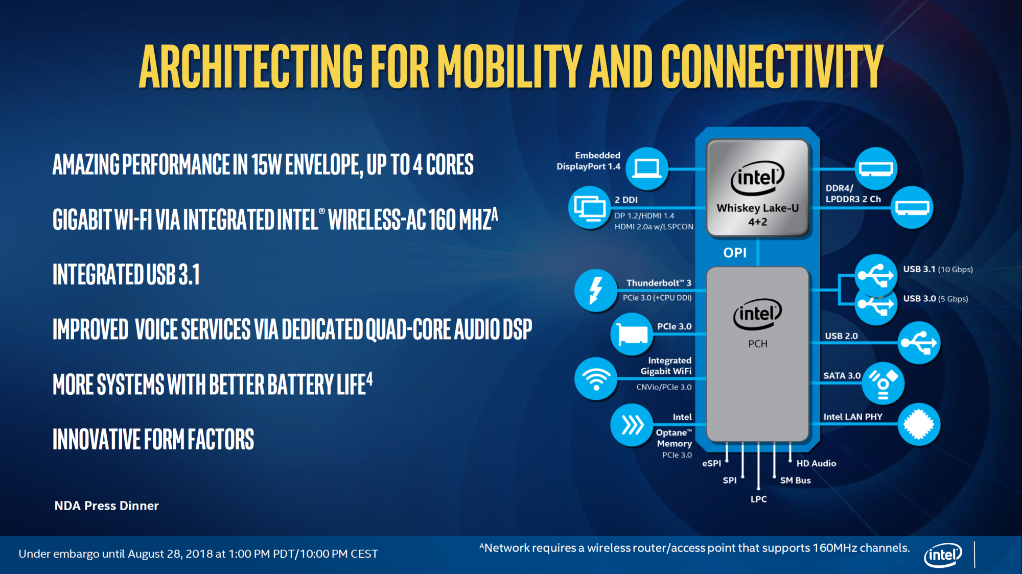 Intel sortiert die neuen CPUs denn auch in die bekannte achte Core-i-Generation ein – man erkennt Whiskey Lake lediglich an der konkreten Modellnummer oder dem "Optimized for Connectivity"-Zusatz unter dem eigentlichen Logo, das Notebook-Hersteller auf die Handballenablagen kleben.