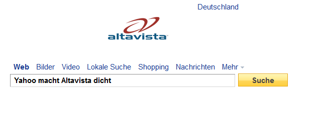Danach wurde Google Marktführer und Altavista verlor an Bedeutung, bis Altavista nach mehreren Übernahmen von Yahoo gekauft wurde. Altavista-Suchanfragen wurden schon seit einigen Jahren über yahoo.com geleitet. Für alle Suchen möge man jetzt auf Yahoo Search ausweichen, gab der Internetkonzern passenderweise via Tumblr bekannt. Hinter Yahoo Search steckt wiederum Suchmaschinen-Technik von Microsoft.