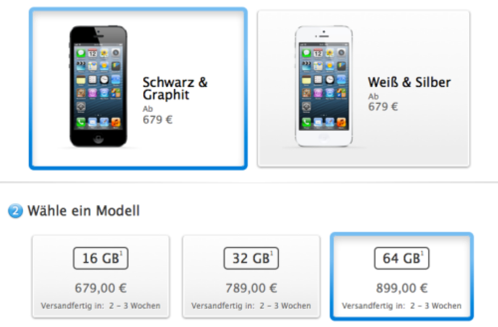 Apple scheint bei der iPhone-5-Produktion Fortschritte zu machen: Nachdem das neue Smartphone schon kurz nach Verkaufsstart bei der Lieferbarkeit nach hinten rutschte, hat sich die Verfügbarkeit im Apple Online Store nun leicht verbessert. Versandfertig sollen alle Varianten des Handys nun in "2 - 3 Wochen" sein, während man bislang mindestens "3 - 4 Wochen" warten musste.