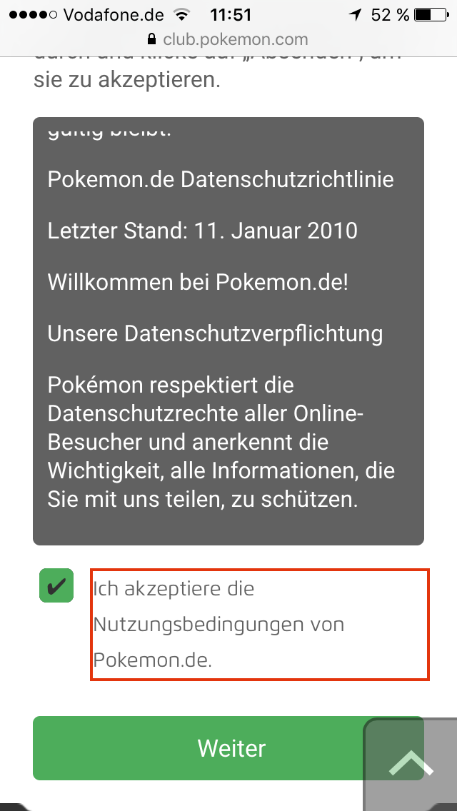 Es müssen die Nutzungsbedingungen und die Datenschutzerklärung des Betreibers akzeptiert werden. Diese sind branchenüblich – was leider nicht bedeutet, dass sie vorbildlich wären. So muss sich jeder Nutzer von Pokémon Go bewusst sein, dass sein Spielverhalten inklusive der aktuellen Geolokalisierung erfasst wird und diese Daten in den USA verarbeitet werden, wo ein niedrigeres Datenschutzniveau herrscht. Verbunden sind diese Daten mit eindeutigen Daten über die Spieler, die laut den Vorgaben der Betreiber aktuell und wahrheitsgemäß sein müssen. Anonymität bei der Pokémon-Jagd ist nicht erwünscht.