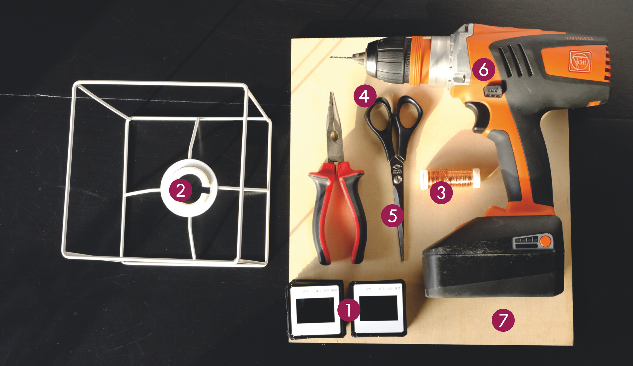 Den Lampenschirm können Sie prinzipiell in allen Größen und Formen herstellen. Auf mein quadratisches Lampengestell passen auf jede Seite genau neun Dias. Die folgende Anleitung ist für die abgebildete Lampe, weitere Projekte können Sie analog zu diesem aufbauen. Wer sehr viele Dias unterbringen kann und die nötige Ausdauer mitbringt, kann beispielsweise auch eine alte Stehlampe umbauen.