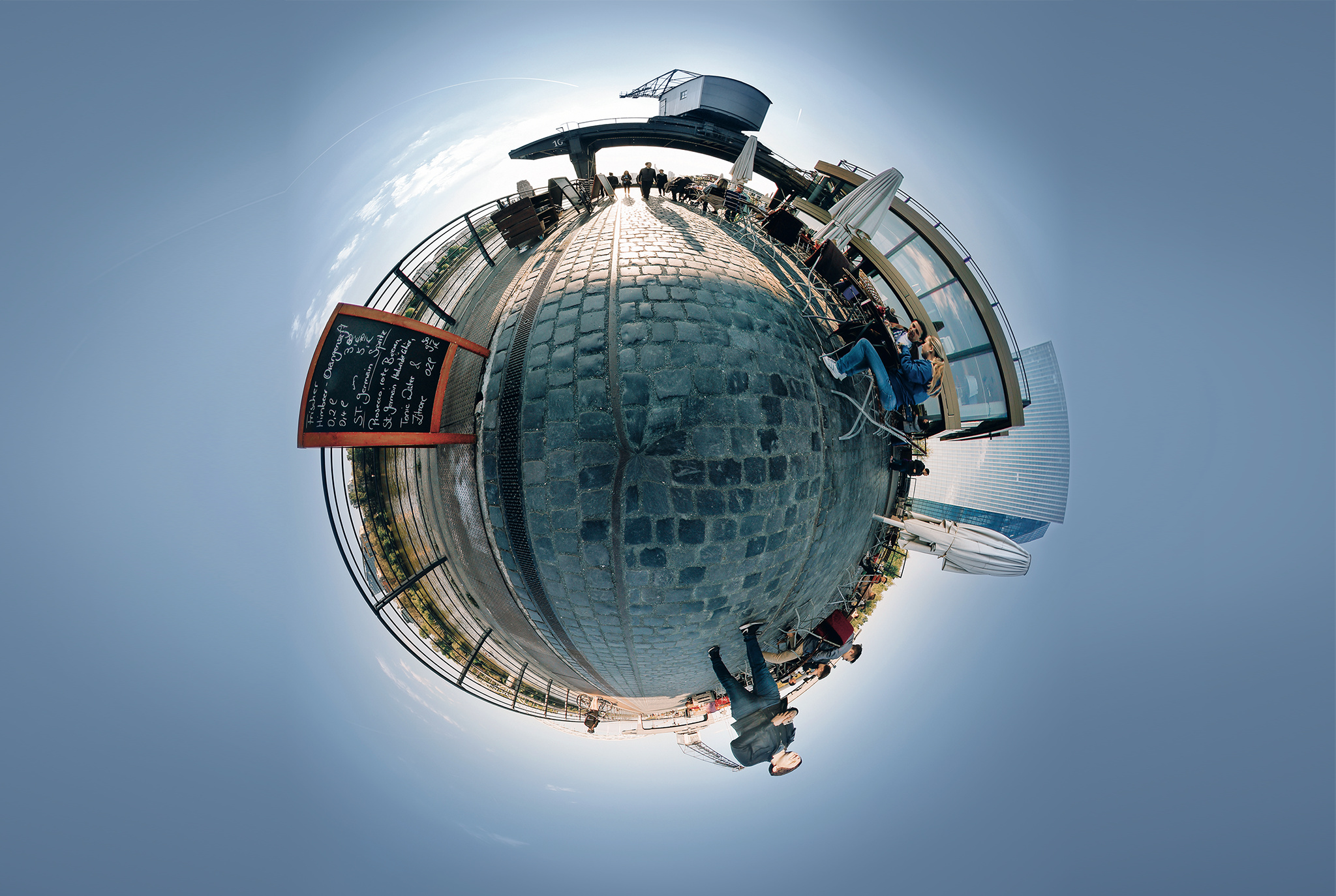 Sphärische Rundum-Panoramen wie hier vom Osthafen Frankfurt am Main sind nicht ganz einfach aufzunehmen. Mit ein paar Tricks gelingt es aber zuverlässig, schnell und sogar aus der Hand! Canon EOS 5D Mark III | 8 mm | ISO 160 | f/5.6 | 1/60 s | Panorama aus drei JPGs