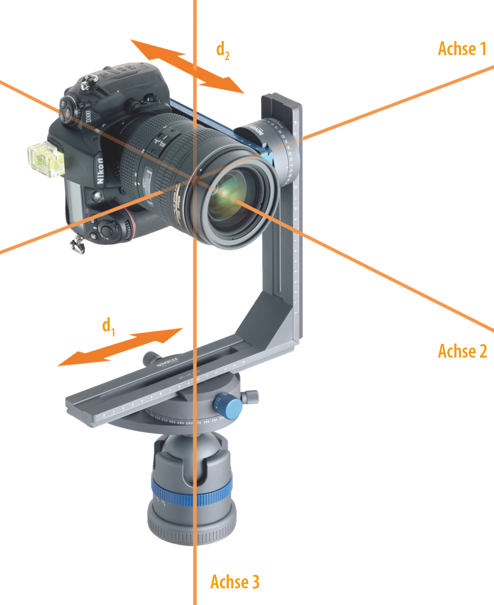 Für komplexe Panoramen mit einer großen Tiefenausdehnung verwendet man typischerweise einen speziellen Nodalpunkt-Adapter, um sicherzugehen, dass die Kamera exakt im besagten Punkt rotiert wird.