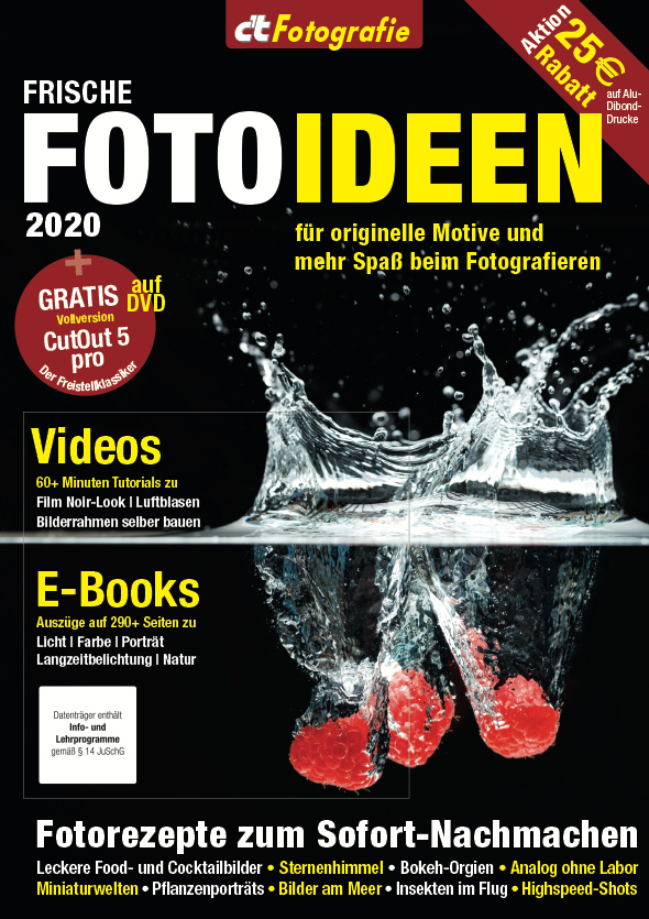 Mit unseren Fotoideen bringen wir frischen Wind in Ihren Fotoalltag. Michael Breitung nimmt Sie mit in den Wald und zeigt, wie er märchenhafte Bilder komponiert. Bastian Werner hat die richtigen Tipps, um im Frühling die besondere Lichtstimmung am Morgen und beim Sonnenuntergang einzufangen. Experimentell wird es bei den farbenfrohen Bildern von Kyra und Christian Sänger aus dem Heimstudio. Wer auch selbst einmal Hand anlegen möchte, findet Inspiration bei den Beiträgen von Cyrill Harnischmacher und Michael Jordan, die mit Do-it-yourself-Lösungen ungewohnte Bilder ermöglichen.