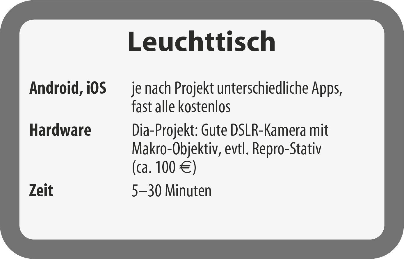 Leuchttische zum Zeichnen kosten häufig mehrere hundert Euro. Für viele Anwendungen reicht aber ein großes Tablet wie ein iPad 2 oder ein altes Galaxy Tab völlig aus. Stellt man es auf volle Helligkeit und öffnet eine Taschenlampen-App, strahlt das Tablet-Display wie ein Leuchttisch durch Vorlagen und Skizzenpapier hindurch und ermöglicht es so, Vorlagen abzupausen. Selbst die hellsten Tablets schaffen es allerdings nicht, dickeres Fotopapier zu durchleuchten. Dafür kann man anders als beim Leuchttisch aber auch das Foto zum Abzeichnen einfach in der Fotogalerie des Tablets öffnen – notfalls fotografieren Sie die Foto-Vorlage dazu vorher ab. Am besten fixieren Sie das Skizzenpapier am Tablet-Rahmen oder legen das Tablet in einen Zeichenblock unter das oberste Blatt, damit es nicht verrutscht. So vermeiden Sie auch, dass der Finger beim Zeichnen das Papier verschiebt und dabei den Touchscreen auslöst. Sind die Konturen auf dem Vorlage-Foto zu schwach, können Sie das Abzeichnen durch Erhöhen des Kontrasts in einer Bildbearbeitung erleichtern. Noch einfacher ist es, wenn Sie mit den werbefinanzierten Apps Sketch Guru (Android, iOS) oder Sketch Kamera (Android) die Linien auf dem Foto automatisiert nachzeichnen lassen.