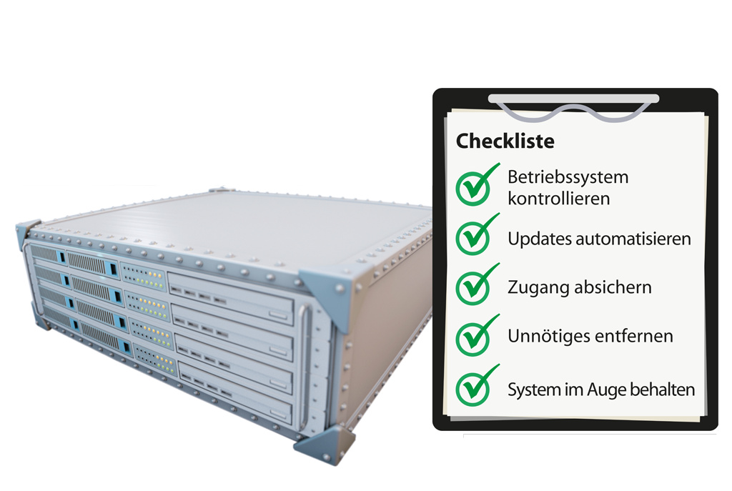 Was im Folgenden hauptsächlich für Linux-Server erzählt wird, lässt sich auch auf Windows und andere Betriebssysteme übertragen. Die Grundvoraussetzung, um langfristig nichts zu riskieren, besteht darin, auf einem Server ein aktuelles Betriebssystem zu nutzen, das regelmäßig mit Sicherheits-Updates gefüttert wird.