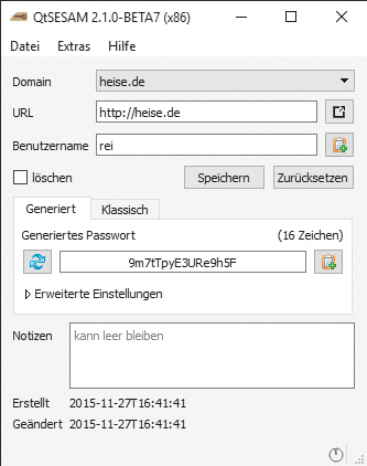 Passwort-Manager sind der einfachste Weg, für jeden Zweck ein anderes Kennwort zu nutzen. Sie sammeln die Zugangsdaten nicht nur in einem verschlüsselten Container, sondern bringen meist auch einen Passwort-Generator mit, der beliebig lange und komplexe Kennwörter ausgibt. Ein prominenter Vertreter dieser Gattung ist KeePass, das auf allen wichtigen Desktop-Betriebssystemen läuft. Für die meisten Mobil-Plattformen gibt es kompatible Apps, die KeePass-Container öffnen. Auch c’t SESAM (Windows, OS X, Linux) ist ein sicherer Ablageort für Ihre Zugangsdaten. Es generiert auf Wunsch nach einem kryptographischen Verfahren einzigartige Zugangspasswörter für die von Ihnen genutzten Dienste. Zudem gibt es eine Synchronisierungs-Funktion – den dazugehörigen Server können Sie selbst betreiben. Die Tools finden Sie über den c’t-Link am Ende des Artikels.