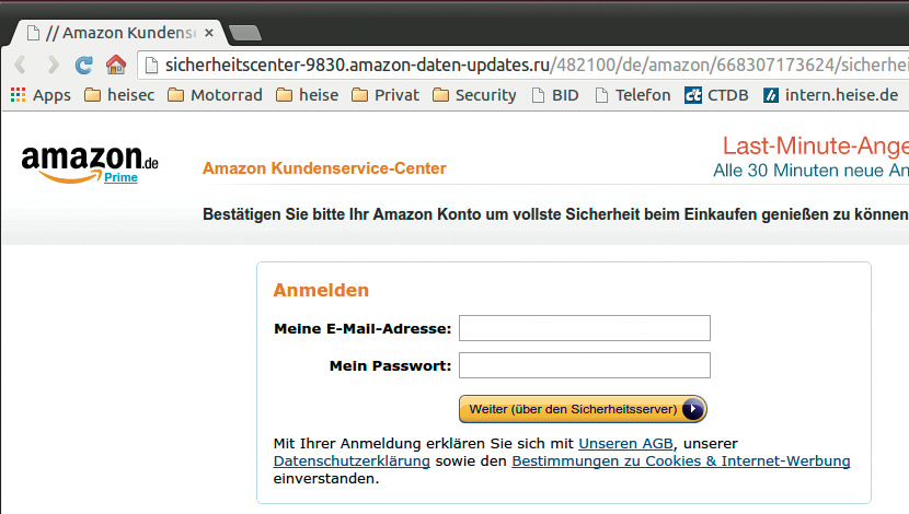 Wer auf den Link in einer gefälschten E-Mail klickt, landet neuerdings immer öfter auf nahezu perfekt nachgebauten Phishing-Webseiten, die etwa von der originalen Amazon-Webseite kaum zu unterscheiden sind. An dieser Stelle fliegt der Betrug dann aber doch auf, denn eine URL wie etwa sicherheitscenter-9830.amazon-daten-updates.ru gehört nicht zur Amazon-Domain. Doch auch hier muss man aufpassen, denn oftmals versuchen Kriminelle, sich Domains zu sichern, die etwa einen Buchstabendreher aufweisen und so auf den ersten Blick wie die Adresse der legitimen Webseite aussehen.