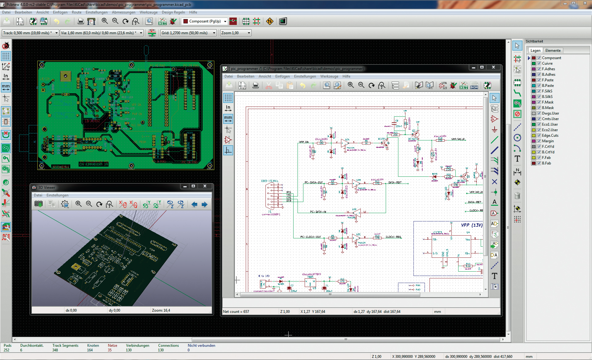Das Open-Source-Projekt KiCad 2015 zeigt, dass man auch mit Gratis-Software professionell Leiterplatten entwickeln kann, ohne dabei Einschränkungen für Platinengröße und die Menge an Lagen und Anschlusspins hinzunehmen.