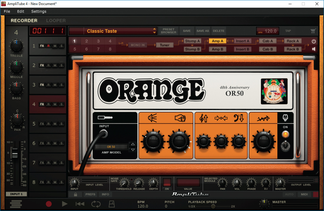 AmpliTube 4 von IK Multimedia simuliert eine Vielzahl klassischer Röhrenverstärker und Effektgeräte für Gitarre und Bass. Die neue Version für Windows und Mac erweitert die Übungsmöglichkeiten mit einem Achtspur-Recorder und einer Loop-Station.