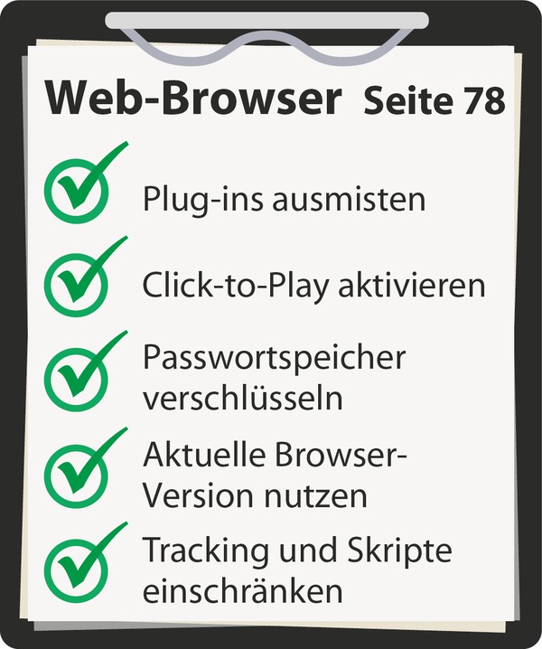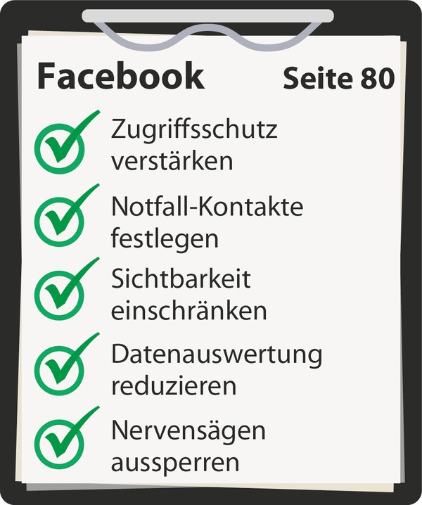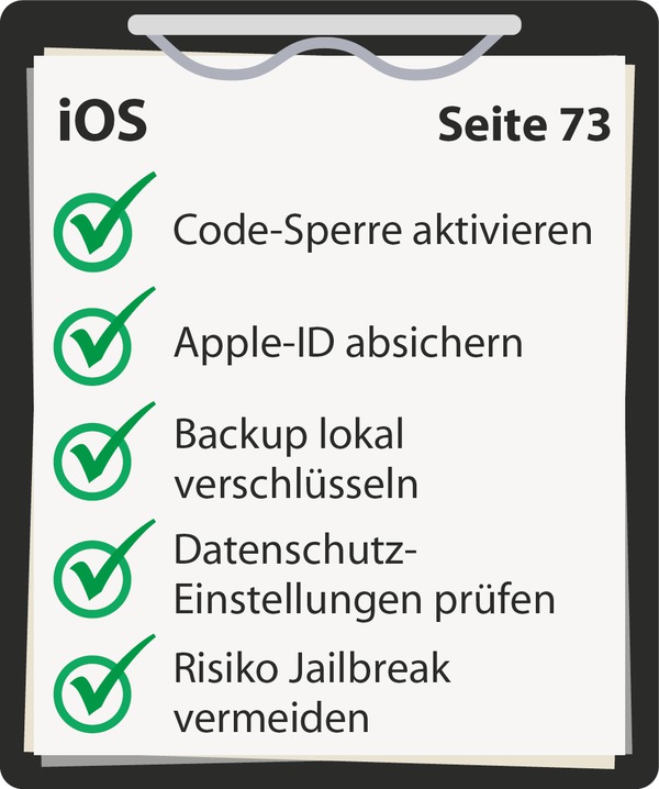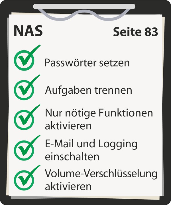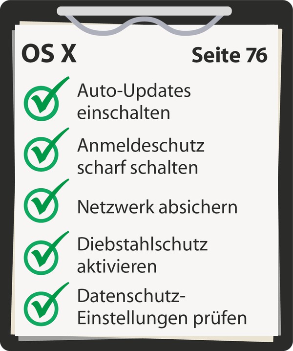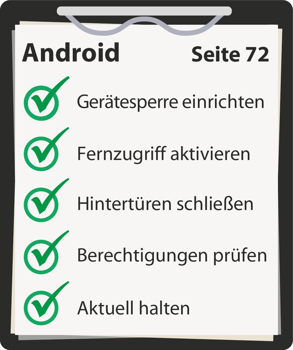 Für die Sicherheit und den Datenschutz kann man einen irren Aufwand betreiben – muss man aber nicht. Unsere Checklisten helfen Ihnen dabei, Ihre Gerätschaften und Online-Dienste im Handumdrehen abzusichern. Neben Smartphone und Tablet, Rechner, Router und NAS berücksichtigen wir unter anderem auch Facebook und Google. Schützen Sie Ihr digitales Leben schnell und einfach vor den wichtigsten Bedrohungen.