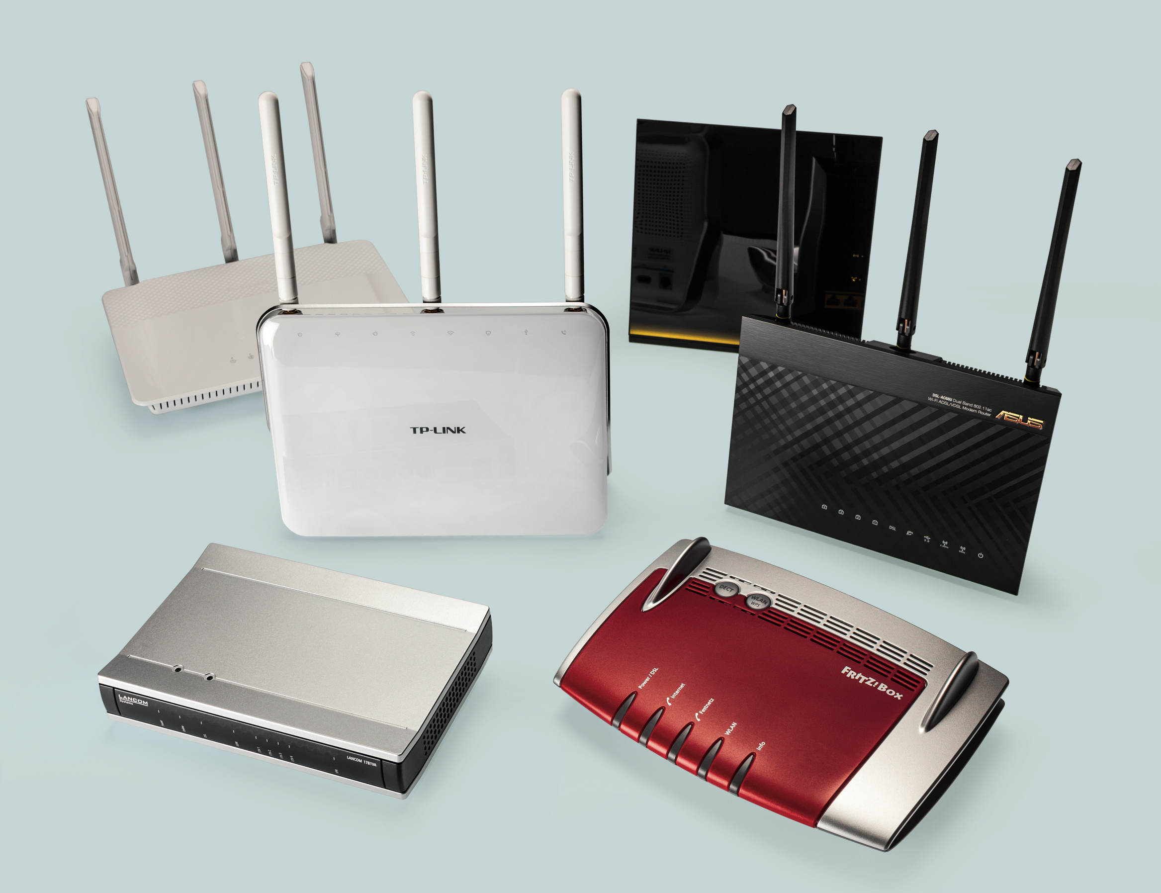 Wir haben an einem repräsentativen Querschnitt aktueller WLAN-Router geprüft, ob sie bei IPv6 mehr können als nur eine Verbindung herzustellen. Fünf Modelle stammen aus dem freien Markt. Zwei haben kein xDSL-Modem, doch abgesehen davon ist die Hardware-Ausstattung ähnlich und sie liegen im selben Preisbereich. Dazu kommt ein vergleichbares Provider-Gerät der Telekom (Speedport Hybrid).