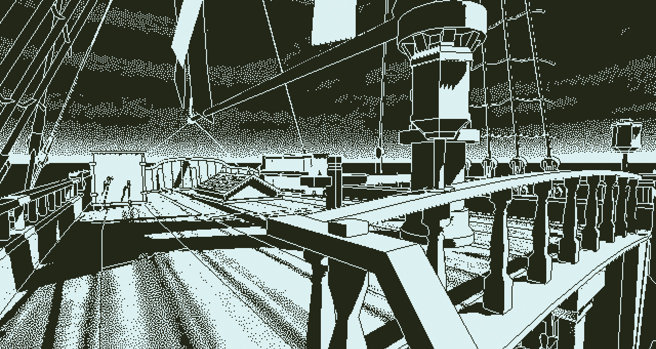 Der durch „Papers, Please“ bekannt gewordene Lucas Pope mischt in seinem neuen Freeware-Spiel Return of the Obra Dinn (Windows, OS X) Zeiträtsel mit einer Piratengeschichte. Der Spieler untersucht in diesem sehr coolen schwarzweiß gerenderten 3D-Adventure (siehe Bild) ein verlassenes Piratenschiff, auf dem Skelette herumliegen. Mittels einer Zeitkapsel kann er sich bei jedem Fund ansehen, was damals geschah, bis er das Geheimnis um das Schiff gelüftet hat.