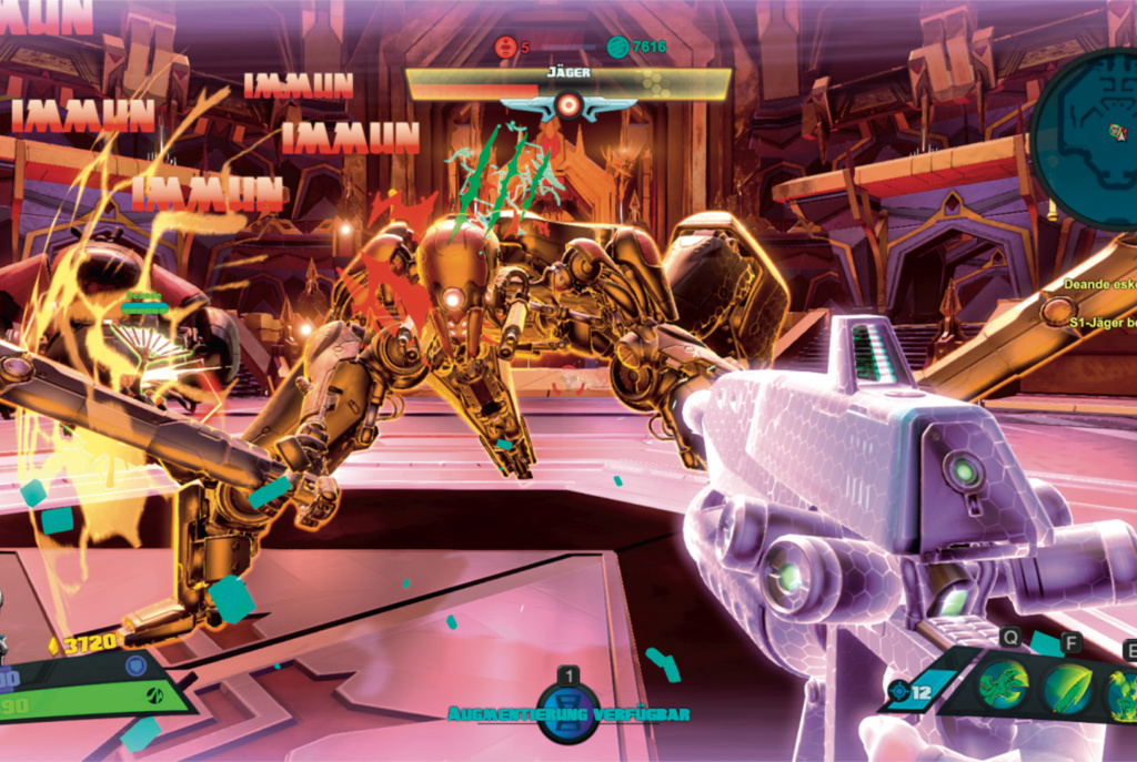 Turbulent, quietschbunt und höchst explosiv geht es bei Battleborn zu. Grelle 3D-Comic-Grafik, absurde Gestalten, beißender Humor: Das Entwicklerstudio Gearbox bleibt sich und dem Stil seiner „Borderlands“-Spiele treu, wobei Battleborn geradliniger und weniger komplex angelegt ist.