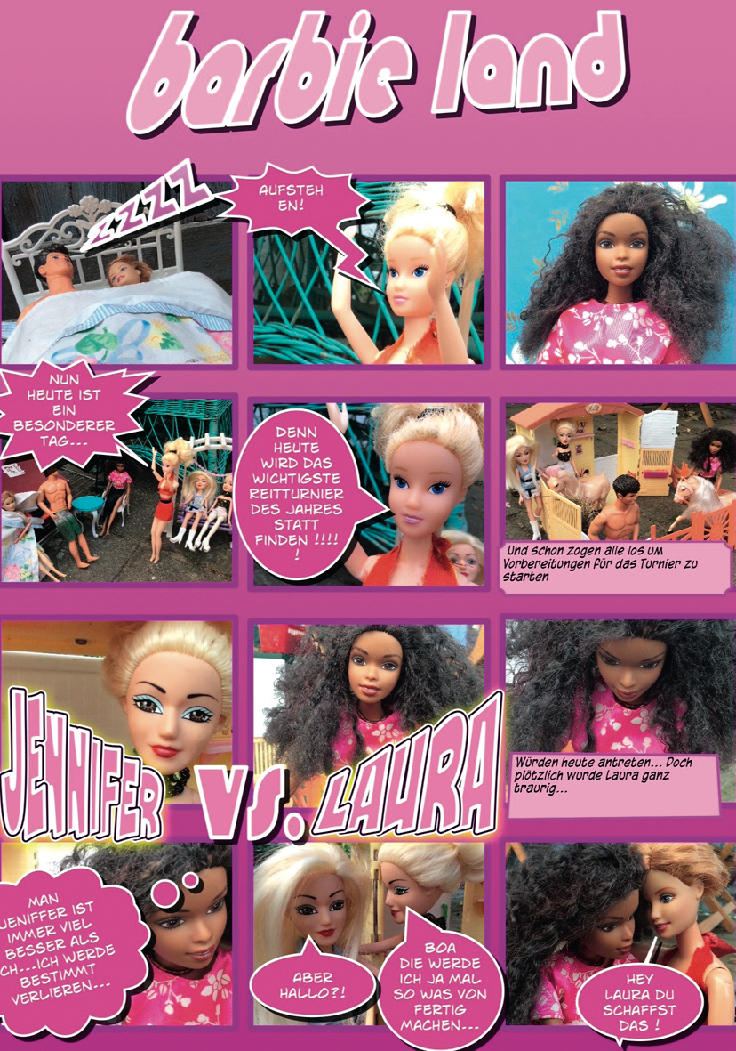 Der sichere Foto-Comic: In einem Foto-Comic müssen nicht unbedingt Menschen die Hauptrolle spielen. Wenn Haustiere, Handpuppen oder Spielsachen als Protagonisten herhalten, braucht man sich wegen der oben erwähnten rechtlichen Probleme keine Gedanken zu machen. Beim Umgang mit Spielzeug ist ein Tisch als Unterlage geeigneter als der Fußboden, denn er lässt das Fotografieren aus ganz unterschiedlichen Blickwinkeln zu. Wichtig: Auf ausreichende Lichtquellen und passende Hintergründe achten!