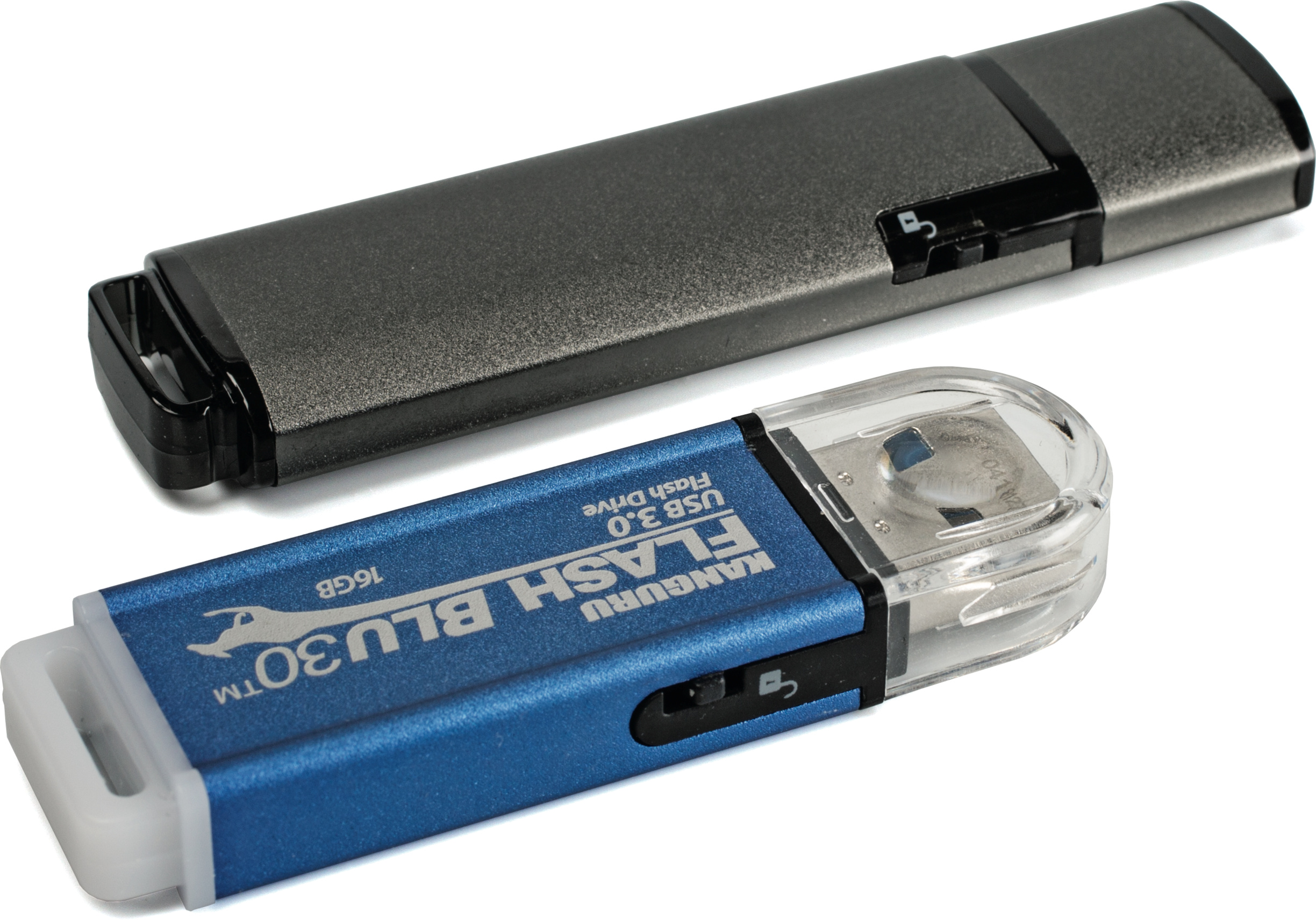 Die schnellen und robusten USB-3.0-Speichersticks von Kanguru sind mit bis zu 256 GByte Kapazität erhältlich. Sie haben einen mechanischen Schreibschutzschalter, der eine sichere und virenfreie Datenverwahrung ermöglicht.