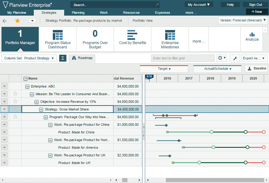 Das Projekt-Portfolio-Managementsystem (PPM) Planview Enterprise 12 soll Geschäftsführern, Projektleitern und -mitarbeitern die strategische Planung von Projektarbeiten erleichtern. Damit können laut Hersteller alle Anwender des Systems an der Ressourcenzuteilung und Priorisierung einzelner Projekte mitwirken. Die Software umfasst Funktionen, um projektübergreifende strategische Roadmaps aufzustellen. Außerdem kann man Verzögerungen in einem Projekt direkt bei der Abwicklung anderer Projekte berücksichtigen. Sowohl Zeitpläne als auch Finanz-Budgets lassen sich über mehrere Projekte zusammenfassen. Die überarbeitete Zeiterfassung soll zusammen mit erweiterten Reportfunktionen prägnantere Ergebnisberichte liefern und außerdem der Projektplanung zugute kommen. Zur flexiblen Auswertung von Projektdaten kooperiert Planview Enterprise jetzt mit dem Web-Dienst Microsoft Power BI. (hps@ct.de)