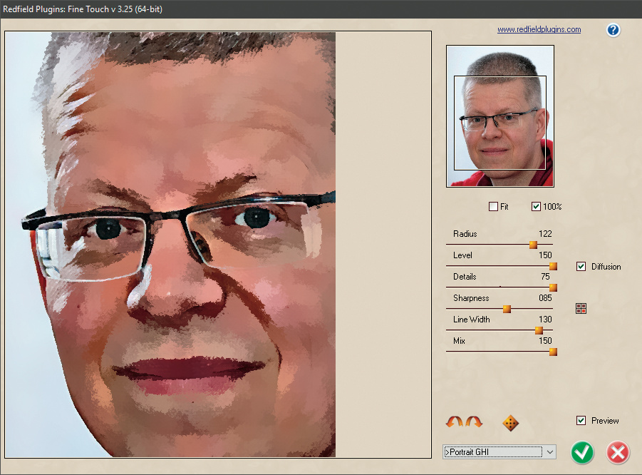 Das kostenlose Photoshop-Plug-in Fine Touch stilisiert Fotos durch Vereinfachung der Farbübergänge. Die Ergebnisse sehen aus wie Ölgemälde.