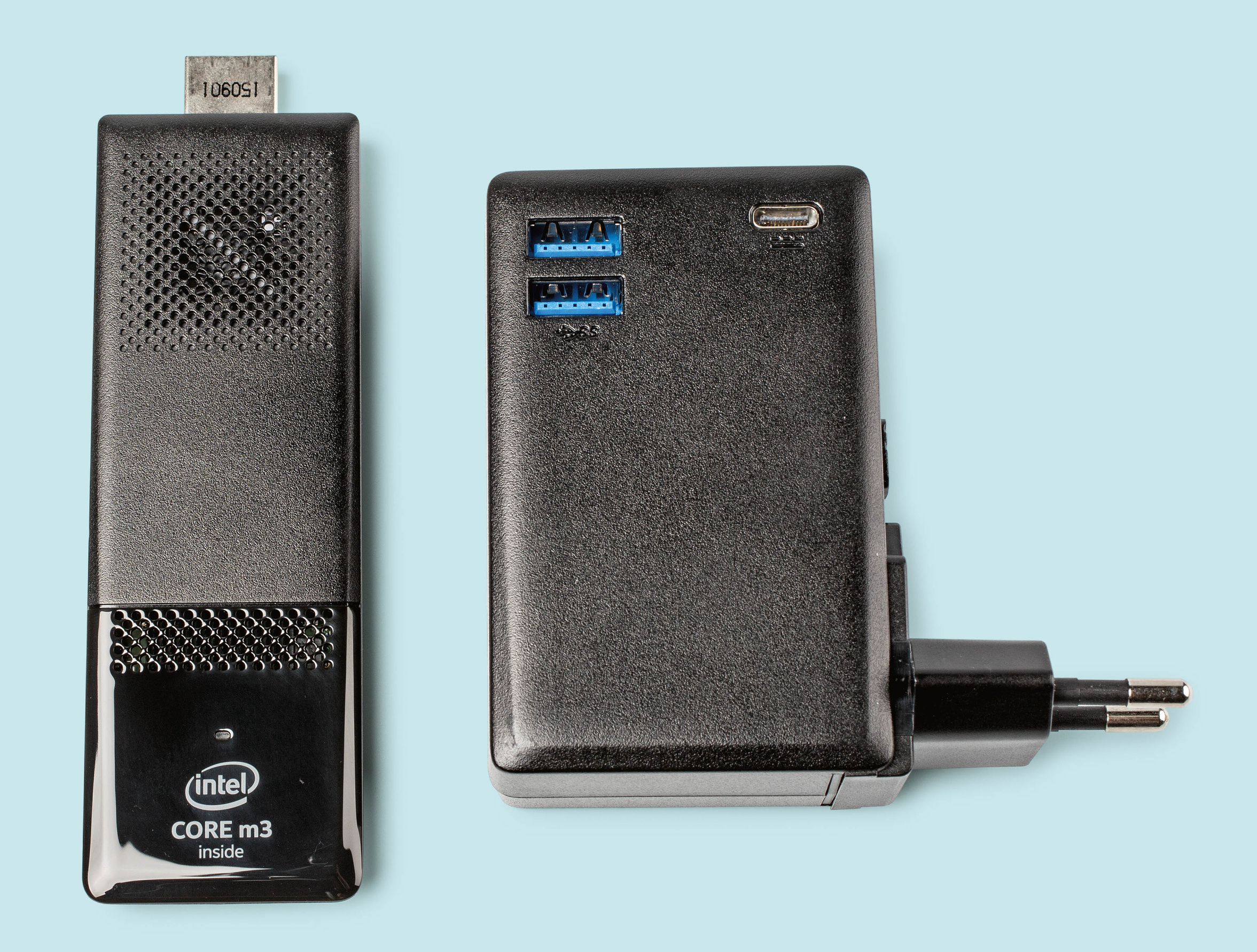 Ganz so einfach ist die Sache freilich nicht, denn ohne Tastatur und Maus läuft auch bei den Rechenstäbchen nichts. Zudem gehört auch noch das mitgelieferte Netzteil ins Gepäck, weil ihr Energiebedarf eine normale USB-Buchse überfordert. Dennoch stellen sie immer dann eine interessante Alternative zu Notebooks dar, wenn es eng zugeht oder weniger (Rechner) mehr ist.