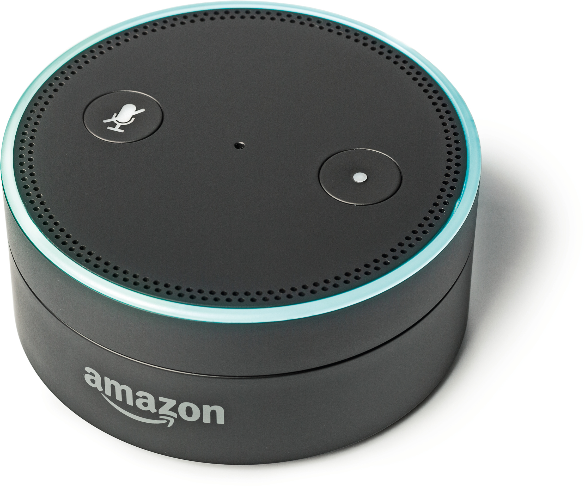 Der vier Zentimeter hohe Echo Dot bleibt übrig, wenn man Amazons Netzwerklautsprecher Echo das Bassreflexsystem klaut. Wie der große Bruder ist Dot aktuell nur in den USA erhältlich. Er lauscht über Fernfeldmikrofone Sprachbefehlen und verarbeitet sie in Amazons Cloud.