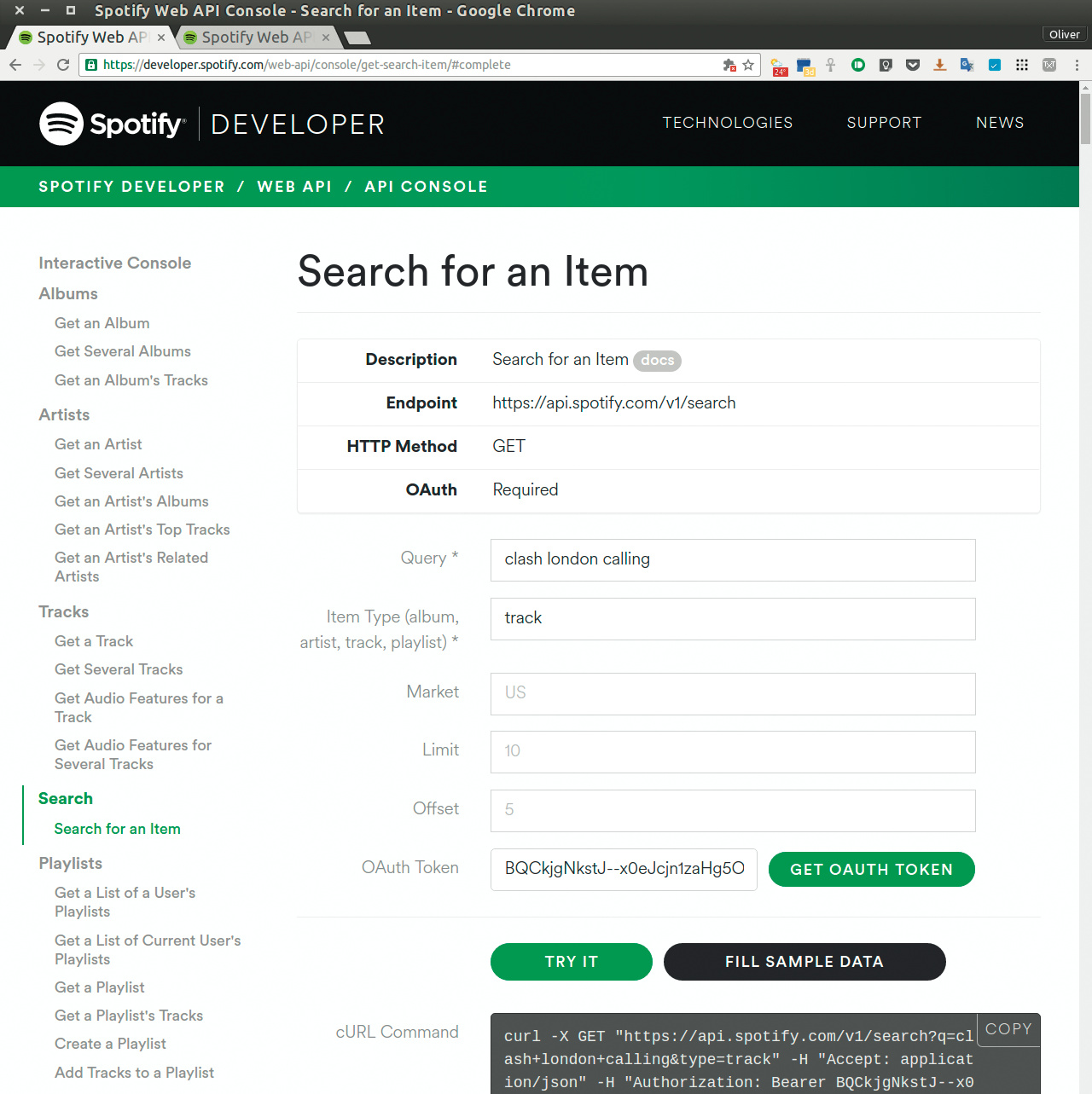 Streaming-Dienste erwecken gerne den Anschein von abgeschlossenen Welten. Oder haben Sie bei Spotify und Co. schon mal eine Funktion entdeckt, um Ihre liebevoll gepflegten Playlisten zu exportieren? Klar, würde ja auch den Wechsel zu einem anderen Anbieter gar zu einfach machen, wenn man seine Playlisten einfach so mitnehmen könnte. Immerhin bietet Spotify ein offizielles Web-API an, über das man nahezu alle Funktionen des Streaming-Dienstes steuern kann – inklusive dem An- und Abspielen beliebiger Songs sowie dem Erstellen und Auslesen von Playlisten. Die folgende URL sucht über das Web-API nach einem Punk-Klassiker; das funktioniert im Browser so gut wie mit curl & Co.: