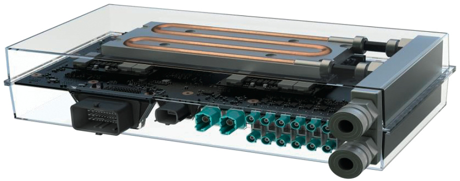 Das wassergekühlte Nvidia-Modul für selbstfahrende Autos enthält zwei der neuen Tegra-Kombi-Chips Parker.