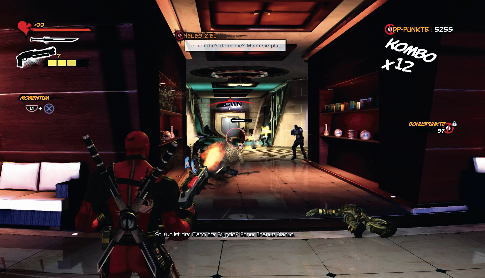 Der Protagonist des gleichnamige Actionspiels Deadpool unterscheidet sich von Superhelden à la Spider-Man so stark wie die schrullige Sängerin Nina Hagen von ihrer braven Kollegin Helene Fischer. Der sarkastische Deadpool präsentiert sich zum einen als brutaler Totschläger mit einer Schwäche für fette Waffen. Zum anderen führt er anregende Streitgespräche mit einer Stimme in seinem Kopf und lässt keinen noch so geschmacklosen Kalauer aus, während er seine Gegnermassen zu Hackfleisch verarbeitet.