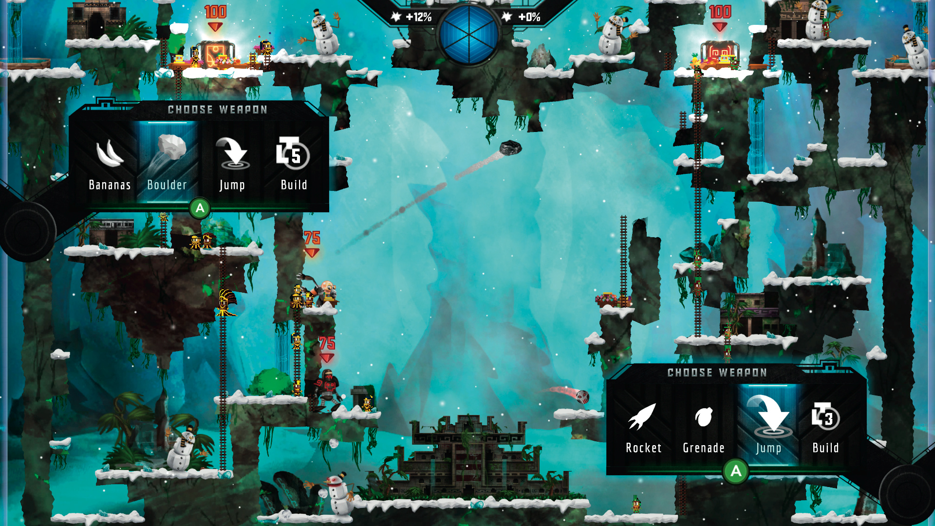 Das erste Spiel des belgischen Sileni Studios erweist sich als spaßiges Taktikspiel für Couch-Strategen. Auf abwechslungsreichen 2D-Karten mit hübschem Maya-Flair bekriegen sich zwei künstliche Titanen. Diese scheinen dem mittelamerikanischen Götterhimmel entsprungen zu sein und bringen jeweils zwei individuelle Attacken mit. Die Göttin der Schöpfung etwa kann explosive Grabkäfer oder Suchkrabbler entsenden, der Gott des Todes Raketen verschießen oder einen Nuklearschlag vom Himmel ordern. Ziel der Attacken ist entweder der Gegner oder dessen geschützter Altar. Erst wenn das Heiligtum zerstört ist, ist der Kampf gewonnen.