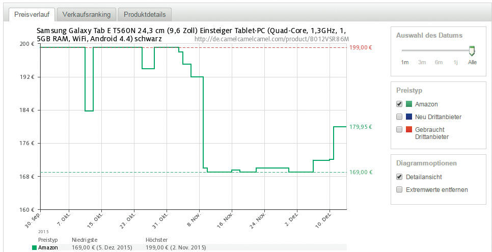 Dazu verknüpft man einen Wunschpreis mit der eigenen E-Mail-Adresse und wird fortan informiert, sobald dieser erreicht oder unterschritten wird. Camel und snipe-it behalten auf Wunsch auch die Neu- und Gebraucht-Angebote von Fremdanbietern auf Amazon im Auge. Zum Beobachten von Blitzangeboten eignen sich die Helfer indes nicht, da sich die Zeiten und Intervalle, zu denen ihre Abfragen laufen, nicht vorgeben lassen.