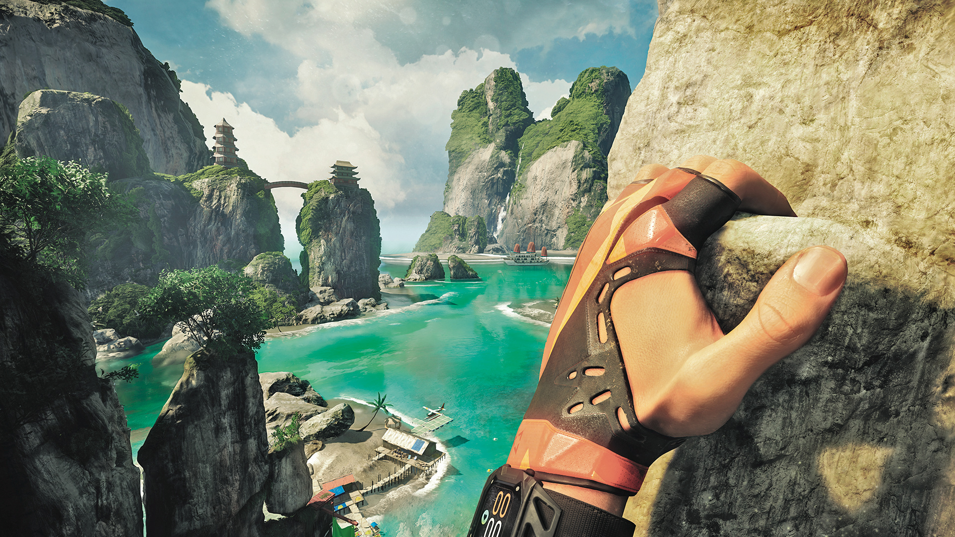 Große Entwicklungsstudios scheinen noch nicht so richtig an die Virtual-Reality-Welle zu glauben – zumindest gibt es erst ganz wenige Triple-A-Produktionen, die von Grund auf für VR entwickelt werden. Das deutsche Studio Crytek – bekannt durch die Shooter-Blockbuster Far Cry und Crysis – traut sich: Sein Kletterspiel „The Climb“ wird ausschließlich mit VR-Hardware laufen, eine Version für konventionelle Bildschirme wird es nicht geben. Schon nach kurzem Anspielen wird klar, warum: Das Gefühl der Gefahr und der Höhe ist so intensiv, dass durch eine „Flachfassung“ ein Großteil der Anziehungskraft verlorenginge.