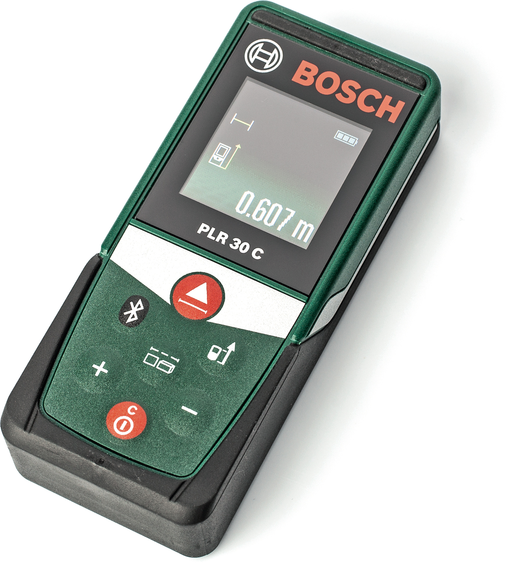 Der Laser-Entfernungsmesser PLR 30 C von Bosch überträgt Entfernungsdaten via Bluetooth an eine Android- oder iOS-App.