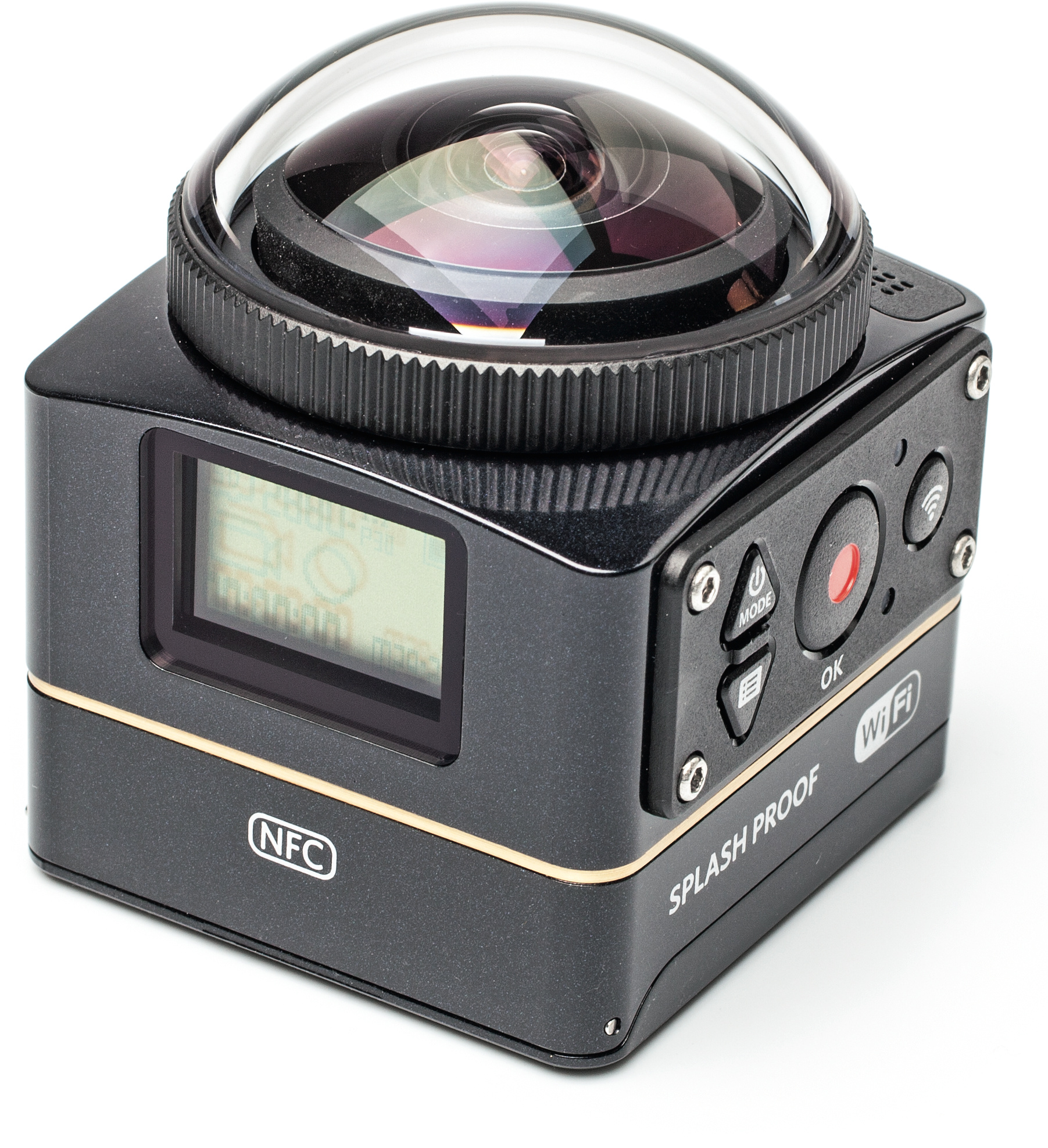In dem robusten, fast würfelförmigen Gehäuse der SP360 4K steckt eine Fixfokus-Linse (Blende f/2.8) mit 235° Bildwinkel. Anders als etwa die Ricoh Theta S „sieht“ die PixPro SP360 4K aber kein komplettes Kugelpanorama, sondern lässt unten einen schwarzen Fleck.