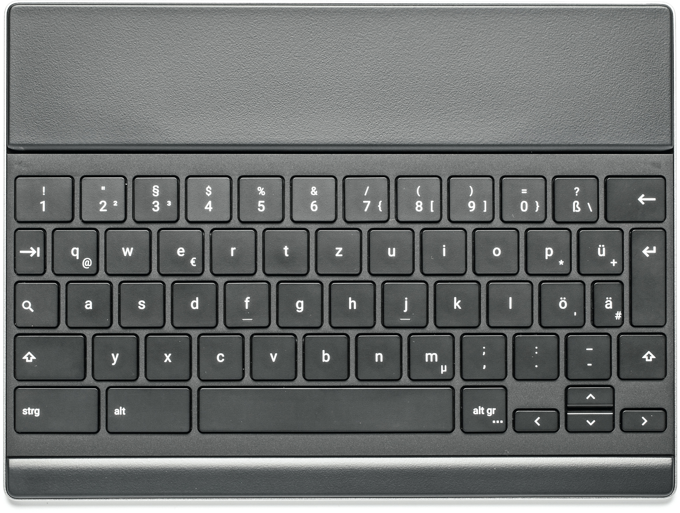 Dem kompakten Tablet-Design geschuldet ist die Tastatur des Pixel C wesentlich schmaler als die des iPad Pro oder gar eines richtigen Notebooks – im Prinzip ist sie so groß wie viele der kompakten Bluetooth-Tastaturen, die man als Zubehör für Tablets bekommt. Die Tasten haben aber trotz des flachen Designs einen vergleichsweise guten Druckpunkt und klackern nicht zu laut.