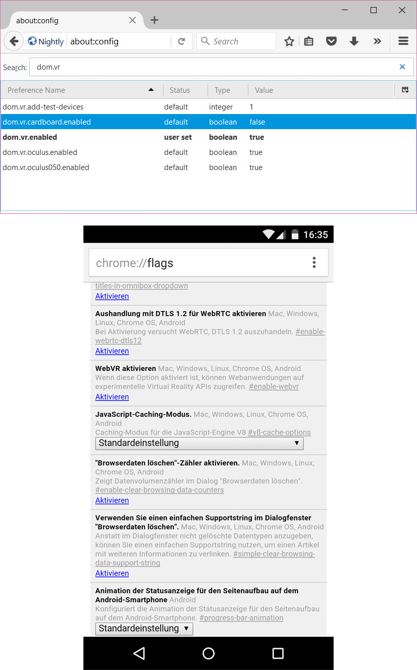 Tatsächlich ist VR im Web keine Science-Fiction mehr. Während Samsung beim Browser seiner Gear VR ganz eigene Wege geht, arbeiten bei Firefox wie auch bei Chrome Teams an einem Standard für WebVR. Experimentelle Versionen der beiden Browser unterstützen diese Technik bereits.
