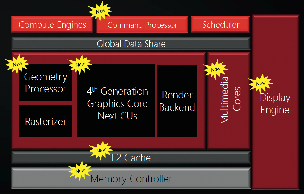 Damit das klappt, hat AMD die bestehende GCN-Architektur an entscheidenden Stellen umgekrempelt. Polaris-GPUs haben offenbar einen besseren Hardware-Scheduler und können Shader-Programme und Texturkompression effizienter ausführen. Dazu kommt noch die neue Display-Engine mit HDMI 2.0a und DisplayPort 1.3 (für HDR-Bilder und 5K-Displays) und eine aufgebohrte Video-Engine, die 4K-Filme im H.265-Format mit 60 fps kodiert oder dekodiert. Das ist vor allem für kommende Video-On-Demand-Streams (Netflix!) und 4K-Blu-rays wichtig.