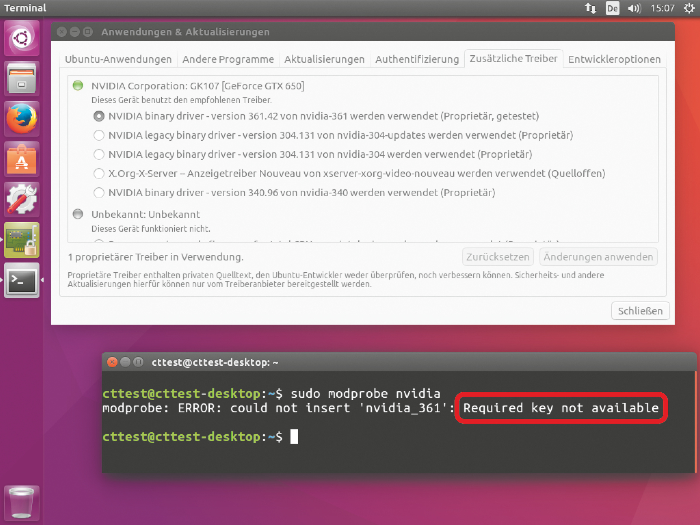 ¯!!! Der Grafiktreiber ist nicht richtig installiert, was Dutzende von Gründen haben kann. Häufigste Ursache: Ihr System konnte das zum Grafiktreiber gehörende Kernel-Modul nicht laden. Über dieses kommunizieren 3D-, Video- und X-Server-Treiber des Nvidia-Treibers mit der Hardware. Meist konnte das Modul nicht gebaut oder wegen Secure Boot nicht geladen werden.