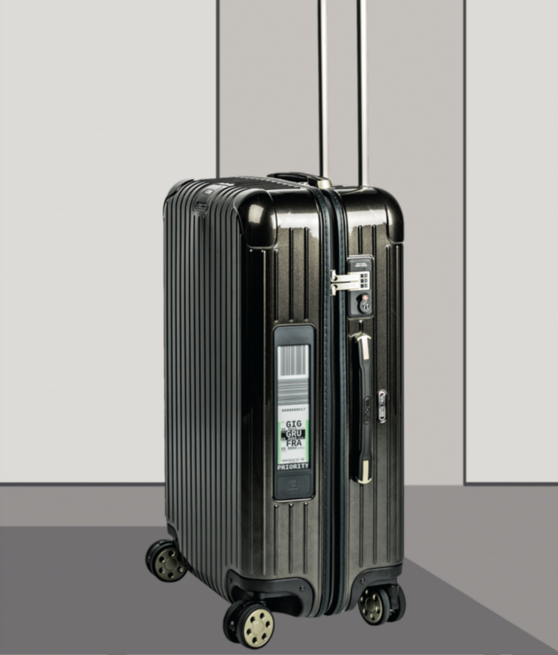 Der Kofferhersteller Rimowa verkauft etliche seiner Modelle optional mit einem fest eingebauten elektronischem Modul samt E-Ink-Display. Dieses lässt sich vom Nutzer schon beim heimischen Check-in per Smartphone mit einem Gepäcklabel bespielen, damit es am Flughafen schneller geht.