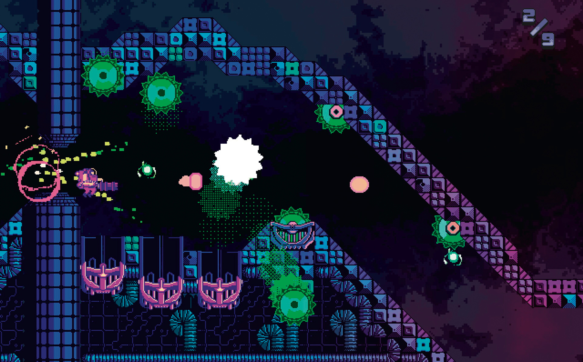 Im Sidescroller RunGunJumpGun (Gambitious, Windows, OS X, 7 Euro) ist der Name Programm. Der Spieler steuert einen fliegenden Astronauten durch ein Höhlensystem. Der hat allerdings nur eine Waffe, die pausenlos ballert. Richtet er sie nach unten, so gewinnt er an Höhe, schießt er nach vorne, kann er Hindernisse beseitigen, sinkt aber gleichzeitig auch zu Boden. Die Richtung der Waffe steuert man nur mit zwei Tasten, vorwärts fliegt der Astronaut automatisch. Aufgrund des hohen Tempos wird RunGunJumpGun schnell zum höllisch schwierigen Reaktionsspiel. Bleibt man an einem Hindernis hängen, spult das Spiel einige Sekunden zurück und man muss es gleich noch einmal probieren. Aufgrund der knalligen Sound-Kulisse und Retro-Grafik packt einen schnell der „Im nächsten Anlauf schaff ich es bestimmt“-Virus – ein Knaller. (hag@ct.de)