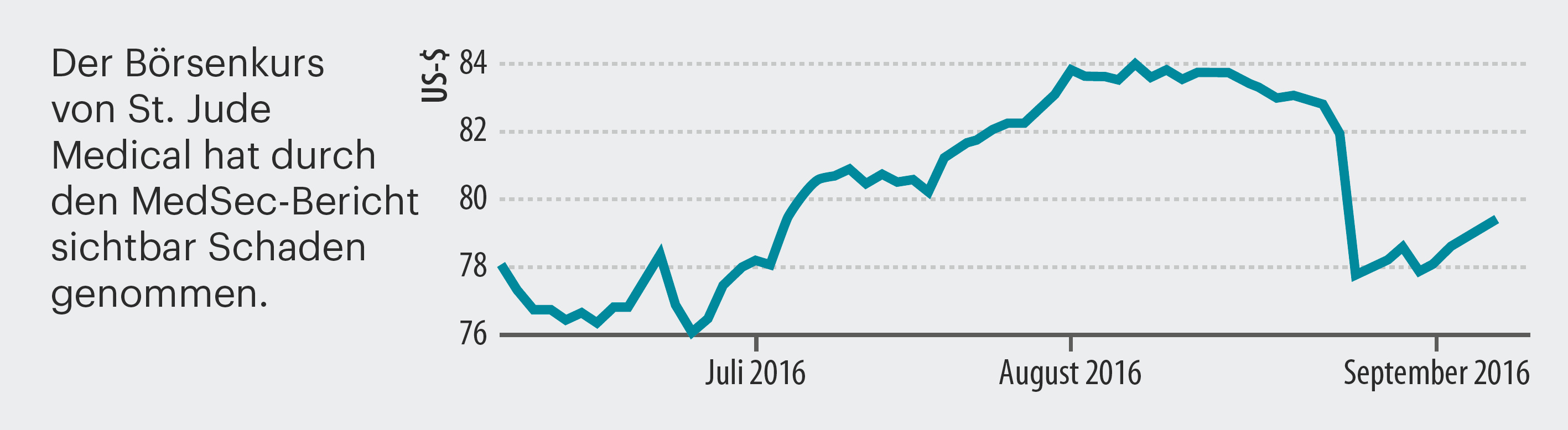 Mit einem Bericht über Schwachstellen in Herzschrittmachern hat die Sicherheitsfirma MedSec den Börsenkurs des Medizintechnik-Herstellers St. Jude Medical um knapp fünf Prozent gedrückt. MedSec hatte Lücken entdeckt und diese absichtlich nicht an den Hersteller, sondern an die Investmentfirma Muddy Waters Capital (MWC) gemeldet. MWC hatte die Erkenntnisse veröffentlicht und gleichzeitig empfohlen, die Aktie von St. Jude zu verkaufen und dafür Papiere der Konkurrenzfirma Abbott Laboratories zu kaufen.
