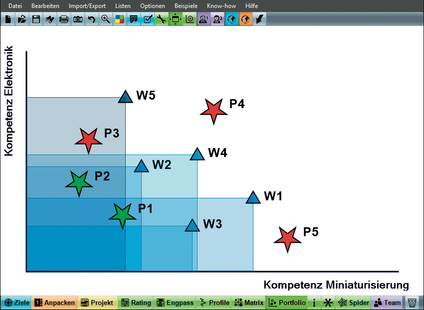 MeineZIELE 17 bringt im Strategie-Teil neue Diagrammformen, darunter das Skill-Diagramm zur Darstellung und Analyse von Kernkompetenzen.