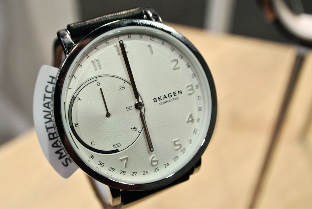 In die gleiche Kerbe schlägt die Fossil-Tochter Skagen: Die Hagen Connected beherrscht Aktivitätstracking, Benachrichtigungen, hat ein unauffälliges Aussehen nebst langer Laufzeit. Auf Benachrichtigungen macht sie per Vibration aufmerksam. Nettes Feature: Benachrichtigungen oder Kontakten kann man eine Position der Uhrzeiger zuordnen. Sobald die Uhr vibriert, sieht man an der Zeigerstellung, ob es sich lohnt, das Smartphone aus der Tasche zu ziehen. Die Hagen Connected soll in den kommenden Wochen für 200 US-$ erscheinen; den Preis für Deutschland nannte Skagen noch nicht.