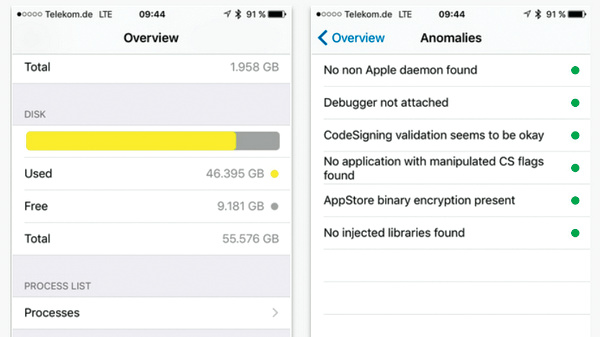 Aber erst nachdem die Nachrichtenwelle über den Pegasus-Fall verebbte, kam heraus, dass das Aufdecken von Spyware für geschulte Entwickler noch trivial ist – selbst iOS-Zeroday-Malware „in the wild“ lässt sich einfach erkennen. Das erklärte Stefan Esser, IT-Security-Experte und Geschäftsführer der Kölner Sicherheitsfirma SektionEins im Gespräch mit Kollegen der Zeitschrift Mac&i (http://ct.de/-3306311). Lookout, eine iOS-App der gleichnamigen kanadischen Firma, die an der Aufdeckung von Pegasus beteiligt war, erkennt den Befall daran, dass einige Dateien im Dateisystem liegen, die dort nicht hingehören.