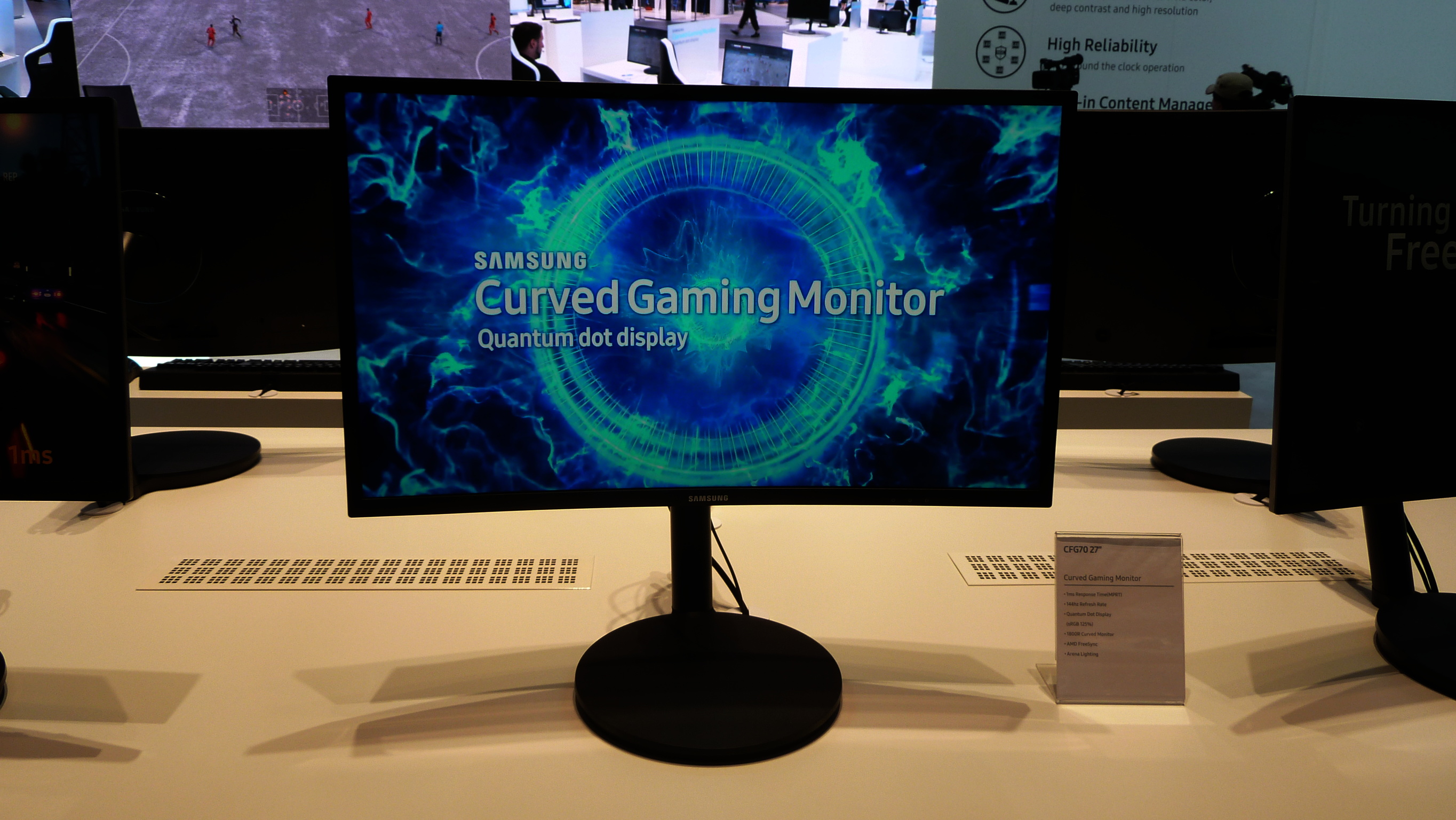 Samsung hat drei flinke, zum Spielen geeignete Monitore mit gebogenem Display vorgestellt. Das Besondere: Die darstellbaren Farben wurden wie bei den teureren Fernsehern des koreanischen Herstellers mit Quantum Dots getunt. Die Gaming-Monitore sollen dadurch eine Farbabdeckung von 125 Prozent sRGB erreichen.