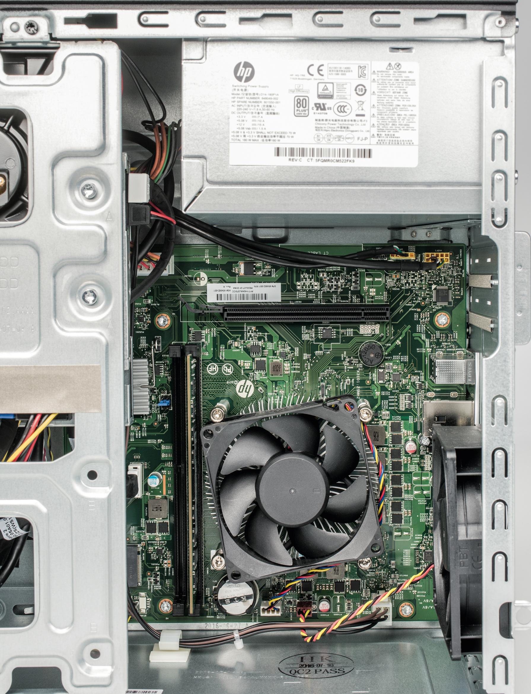 Die Letzten werden die Ersten sein: Die „Bristol Ridge“-Prozessoren von AMD für Desktop-PCs sind die letzten mit Bulldozer-Mikroarchitektur, aber auch die ersten für die Prozessorfassung AM4. Auf AM4-Mainboards sollen ab 2017 FX-Prozessoren mit der neuen, deutlich leistungsfähigeren Zen-Technik laufen. Grund genug, einen genauen Blick auf einen der ersten lieferbaren PCs mit AM4-Technik zu werfen, den HP Pavilion Desktop 510-p150ng. Das 400-Euro-Gerät ist mit der „Accelerated Processing Unit“ (APU) A10-9700 bestückt. Mit APU meint AMD eigentlich bloß Kombiprozessoren, die CPU- und GPU-Kerne vereinen – genau wie jene von Intel. AMD betont aber die Bedeutung der GPU und hofft darauf, dass immer mehr Programmierer sie auch für allgemeine Berechnungen nutzen.