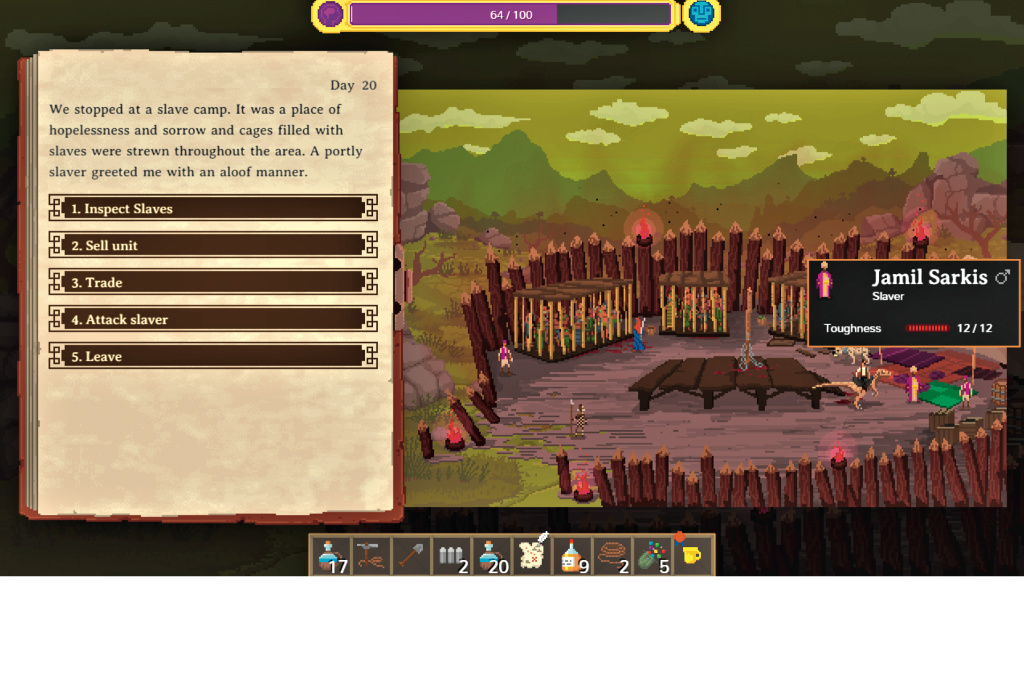 Das Berliner Studio „Maschinen-Mensch“ besteht aus zwei ehemaligen Yager-Mitarbeitern. Die pixelige Retro-Optik ihres vom Medienboard Berlin-Brandenburg geförderten Premierenwerks täuscht: Dahinter verbirgt sich ein äußerst komplexer rundenorientierter Genremix mit hoher Spieltiefe. Exploration, Management und Rollenspiel begegnen einander, hinzu kommen kunterbunte Story-Elemente klassischer Groschenromane – und das Ergebnis ist ausgesprochen wendungs- und überraschungsreich. Offensichtlich haben die Berliner sich in mancher Hinsicht von dem 8-Bit-Klassiker „The Seven Cities of Gold“ inspirieren lassen.