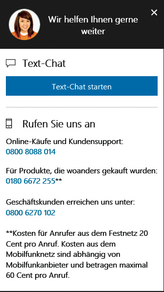 Darüber hinaus gewährt Microsoft weitere Hilfestellungen, beispielsweise individuelle Hilfe per Mail, Chat, Telefon oder Twitter (@microsofthilft). Dabei können sich Microsoft-Mitarbeiter im Rahmen einer Support-Anfrage per Fernsteuerung mit Ihrem PC verbinden – Ihre Mithilfe und Zustimmung vorausgesetzt. Dafür nutzt Microsoft ein eigenes Programm, welches ähnlich simpel wie Teamviewer funktioniert. Der Haken an der Sache: Microsoft behandelt Kunden je nach Sachlage unterschiedlich. Bei Abrechnungsproblemen im Windows Store kann man sich zurückrufen lassen, bei Windows-Problemen hingegen wird man auf eine FAQ verwiesen.