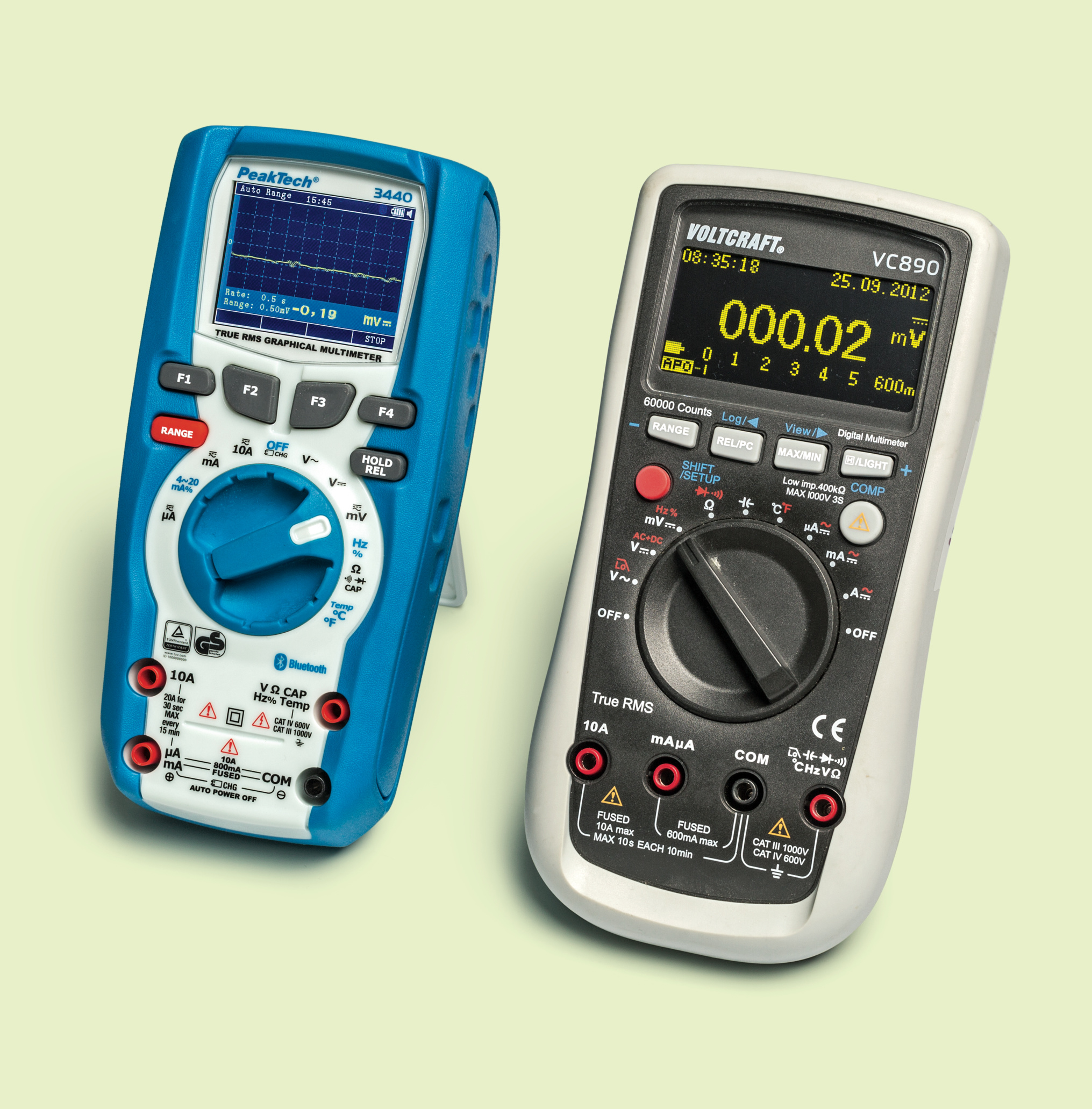 Braucht man eine Daten-Logging-Funktion, muss man tiefer in die Tasche greifen: Ab 130 Euro gibt es Geräte, die mindestens tausend Werte speichern – kleinere Speicher taugen höchstens für Kurzzeitmessungen oder lange Messintervalle. Als Beispielgeräte aus dieser Klasse haben wir uns das mit 154 Euro vergleichsweise günstige CEM DT-9939, das PeakTech 3440 mit Grafikdisplay für 180 Euro, das Uni-T UT171B (190 Euro) und das mit 260 Euro eher teure Voltcraft VC890 angeschaut.