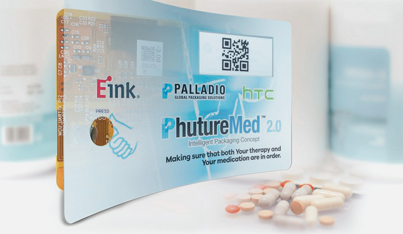 Im Verbund mit dem Smartphone-Hersteller HTC und dem Verpackungsspezialisten Palladio hat E Ink ein Elektrophorese-Display für die Pillenbox entwickelt. Das bistabile E-Paper-Display zeigt den Inhalt der jeweiligen Packung an. Es signalisiert, wann die Medizin das letzte Mal genommen wurde und erinnert den Patienten an ausstehende Medikamenteneinnahmen. Zusätzlich können die Patienten durch einen Druck auf das elektronische Label Medikamente nachbestellen.