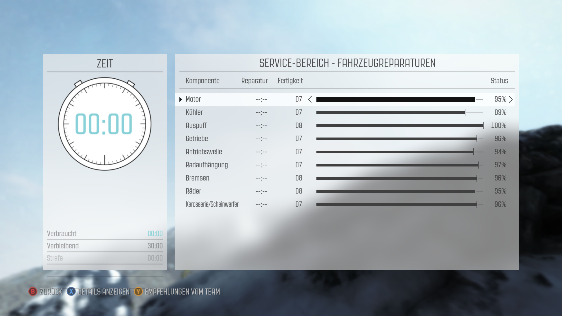 Nach dem Start atmet das Spiel zunächst schnörkellose Sportlichkeit. Statt eines Qualifikationsrennens muss der Rallye-Pilot drei Meisterschaften mit elf Events absolvieren, bevor er an der FIA World Rallycross Championship teilnehmen kann. Dafür stehen insgesamt 39 Wagen in 12 Kategorien zur Verfügung. Das Spektrum reicht von Kultmodellen der 1960er Jahre bis zu aktuellen Fahrzeugen.