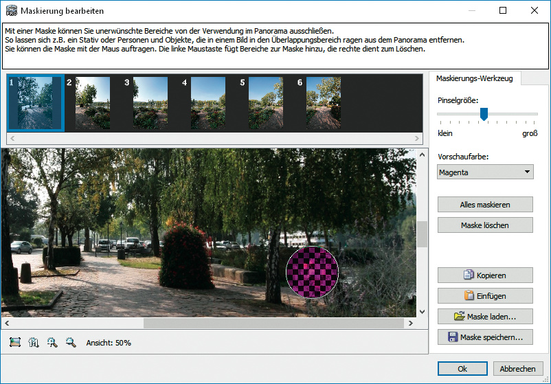Die Fotosoftware PanoramaStudio 3.0 setzt aus Einzelbildern Panoramen zusammen. Wie bisher gibt es die Software als Standardversion für einreihige Aufnahmesequenzen und als Pro-Variante für mehrreihige Aufnahmen. In beiden Varianten zeigt die erweiterte Einzelbildverwaltung nun zu jedem Einzelbild umfangreiche Informationen an. Sie erlaubt den direkten Zugriff auf Bearbeitungsfunktionen, um etwa mithilfe des Maskierungswerkzeugs Teile eines Einzelbildes von der Verwendung im Panoramabild auszuschließen. In der Pro-Version ermöglicht die Viewpoint-Korrektur jetzt das passgenaue Einfügen von Bildern, die von unterschiedlichen Standorten aus aufgenommen wurden. Sie sorgt auch bei Freihandaufnahmen für bessere Ergebnisse. Besteht ein Panorama aus sehr vielen Einzelfotos, hilft der neue Gitteranordnungsassistent, die Bilder vorzusortieren und zuverlässiger auszurichten. PanoramaStudio ist für Windows und OS X erhältlich und kostet in der Standardversion 35 Euro. Die Pro-Variante ist für 70 Euro erhältlich. Für registrierte Nutzer einer Vorversion gibt es Updates für 19 Euro (Standard) beziehungsweise 30 Euro (Pro). (db@ct.de)